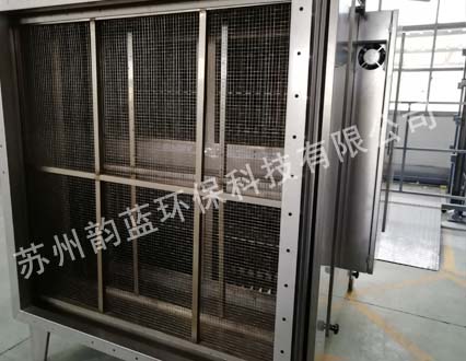 含油煙顆粒物的廢氣吸入高低壓板式末端廢氣處理設(shè)備后,其中部分較大的有霧滴、油污顆粒在均流板上由于機(jī)械碰撞、阻留而被捕集。